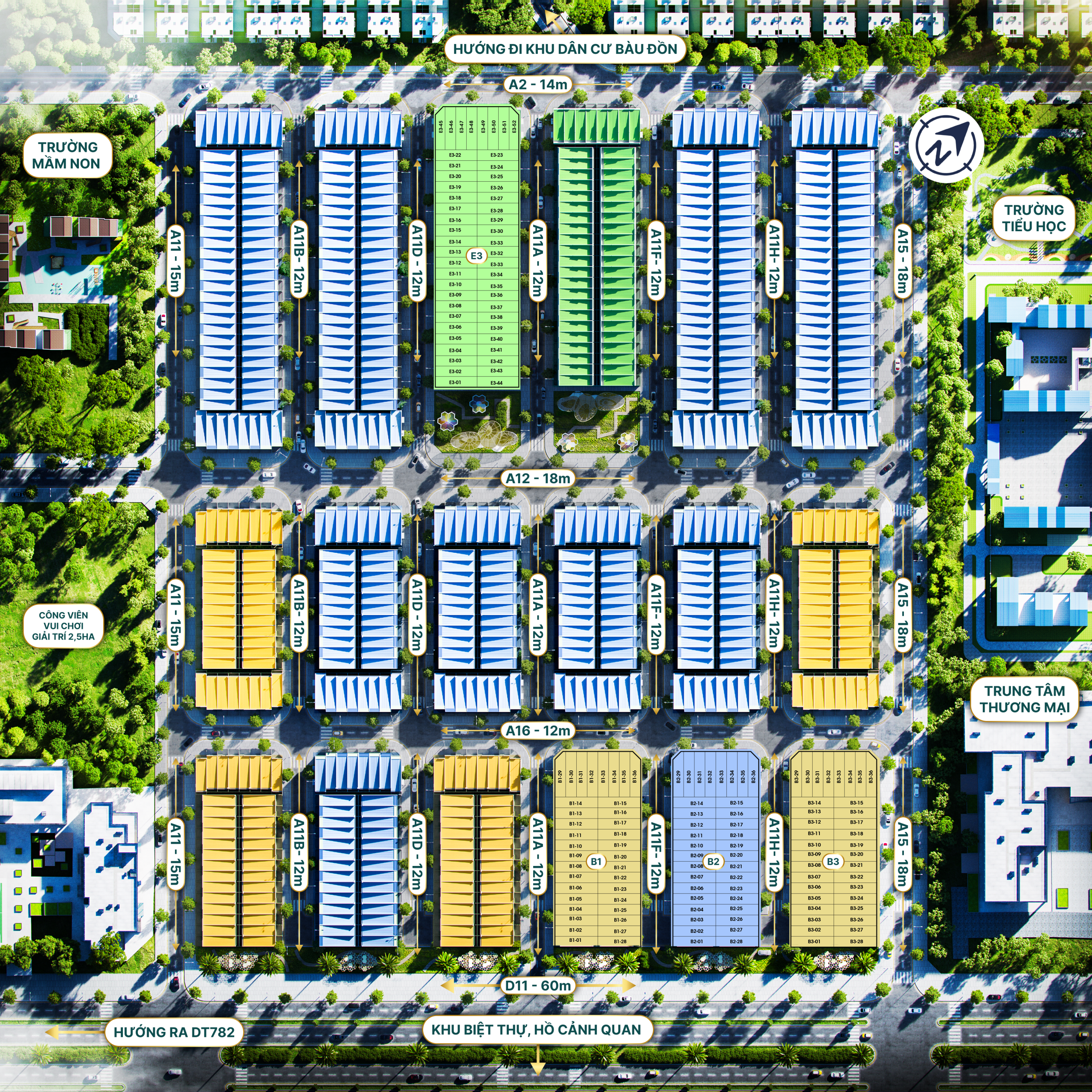 - Tiện ích: 1500m công viên cây xanh, 2,5ha công viên vui chơi giải trí, hồ cảnh quan shophouse, nhà hàng, coffee, trung tâm thương mại 3-5 tầng